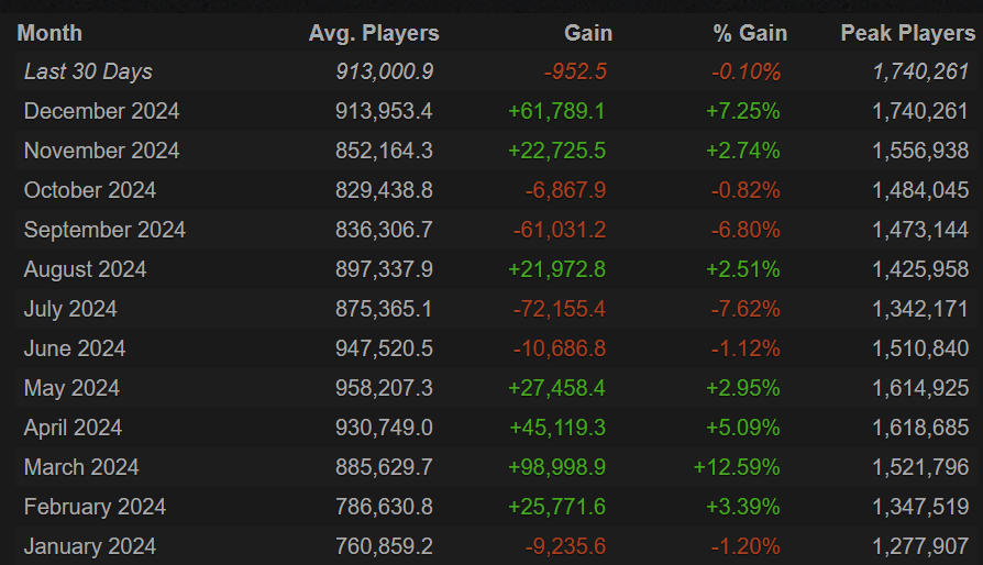 Пиковый онлайн шутера в декабре составил 1 740 261 человек. Это лучший результат 2024 года.