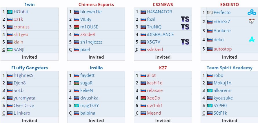 Список участников BetBoom LanDaLan: 1win, Chimera, CS2News, Egoisto, Fluffy Gangsters, Insilio, K27, Spirit Academy.