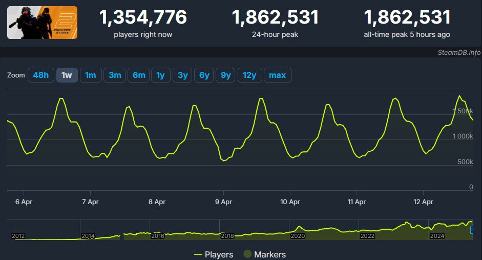 Counter-Strike 2 установил рекорд по пиковому онлайну – 1,862 млн игроков