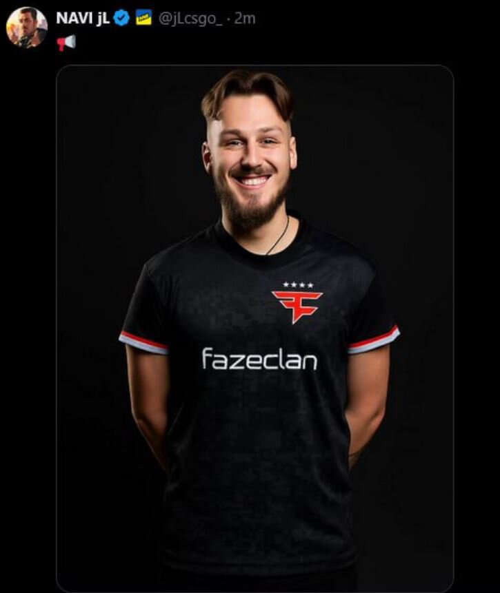 jL отреагировал на слухи об уходе из NAVI эмодзи рупора и фото в форме Faze
