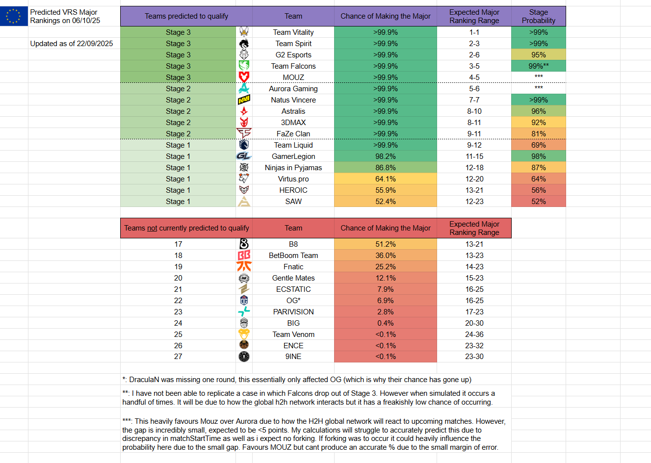 Аналитик MischiefCS2 подсчитал шансы команд по рейтингу VRS на 22 октября.