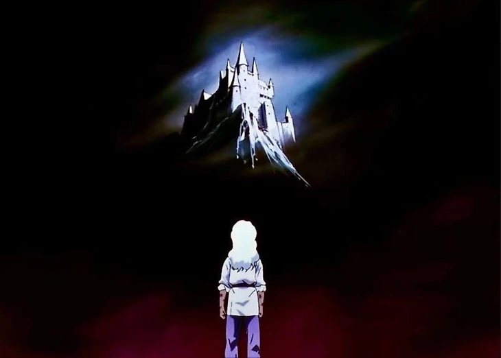 На скриншоте изображен Гриффит, который стоит перед замком.