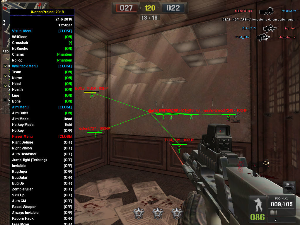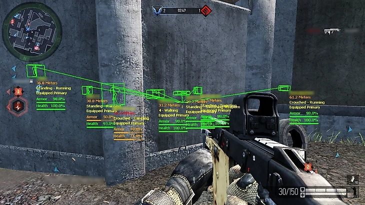 Яркий представитель первой группы – Wallhack. Теперь чтобы видеть соперника сквозь стены не обязательно заменять текстуры на прозрачные. Можно просто вытянуть эту информацию из игры. Несмотря на то, что обычный игрок не видит соперника за препятствиями, тот все равно существует в данных, которые сервер передает клиенту.