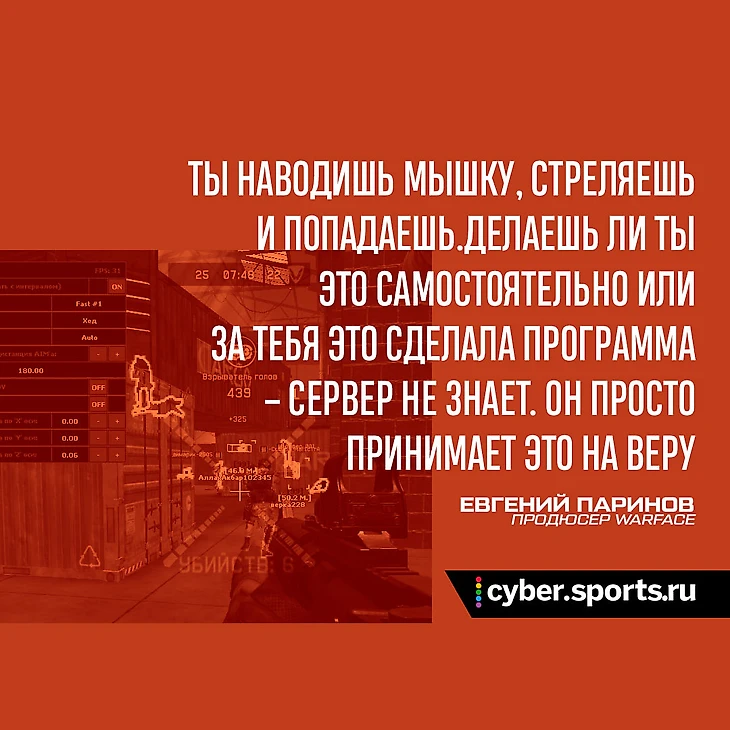 «Например, ты наводишь мышку, стреляешь и попадаешь. Делаешь ли ты это самостоятельно или за тебя это сделала программа – сервер не знает. Он просто принимает это на веру», – рассказывает продюсер Warface.
