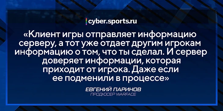 «Читы актуальны для игр, которые обсчитывают что-то на компьютере пользователя. Игры сейчас настолько насыщены событиями, что в угоду геймплею не удается все операции производить на стороне сервера. Клиент игры отправляет информацию серверу, а тот уже отдает другим игрокам информацию о том, что ты сделал. И сервер доверяет информации, которая приходит от игрока. Даже если ее подменили в процессе», – объясняет продюсер Warface Евгений Паринов.