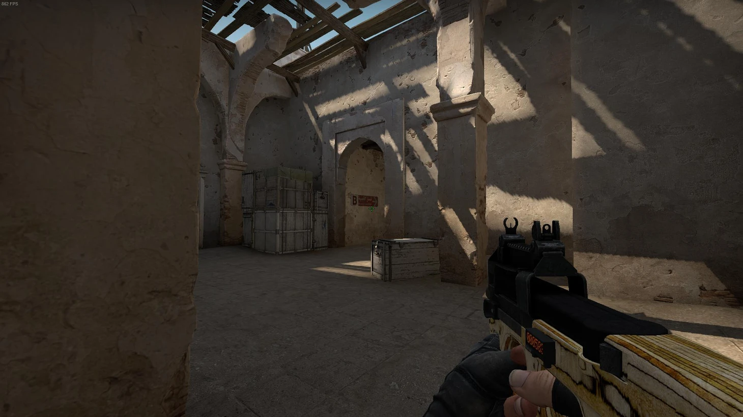 Упор на апартаментах точки В на Mirage. Эта позиция хороша тем, что ее нечасто чекают даже на высоких рангах. В идеале, тиммейт на точке должен отвлекать соперников, в то время как вы сделаете выпад в самый неожиданный для врагов момент. Тайминговая флешка правой кнопкой мыши может сделать работу еще проще.