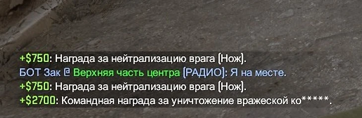 Много игроков в русскоязычном сегменте Counter-Strike заметило очень интересную штуку - в конце раунда сообщение о награде в чате на сервере цензурируется. И, конечно, много кто говорил об этом на различных платформах. Меня потянуло в игру проверить это, и вот что я увидел, сыграв один раунд в игре с ботами.
