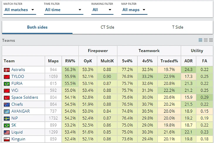 HLTV – самый популярный вебсайт по CS в мире; всегда таким был, и, вероятно, всегда таким будет. На HLTV представлено много различной статы, но она не всегда (и не вся) полезна для про-команд.