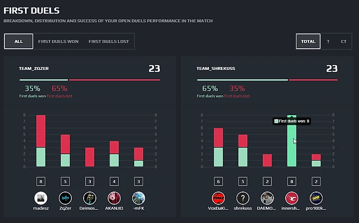В отличие от командной статы по первым дуэлям, индивидуальная может вскрыть точечную проблему.