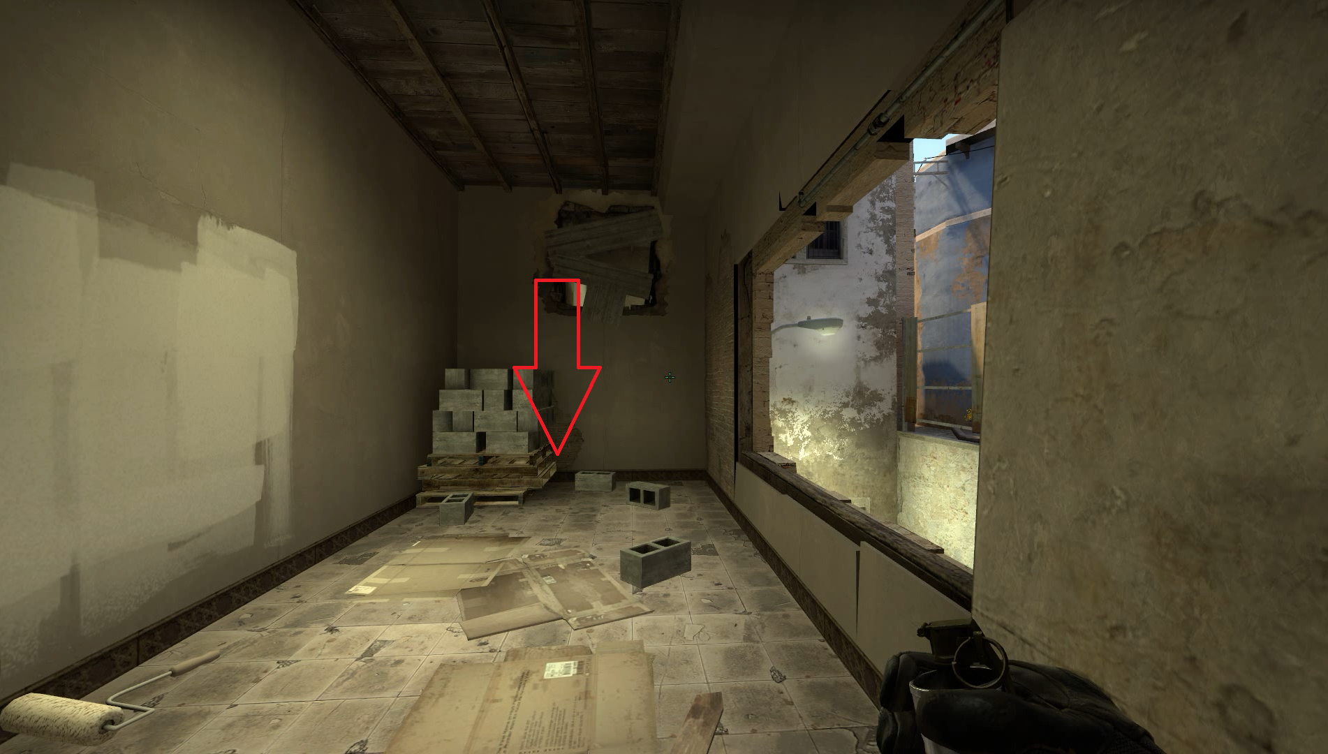 С помощью этой раскидки соперники вообще не смогут увидеть вас, в то время как вы определите их по ногам. Нам нужно занять апартаменты на А и прицелиться в точку около этой области.