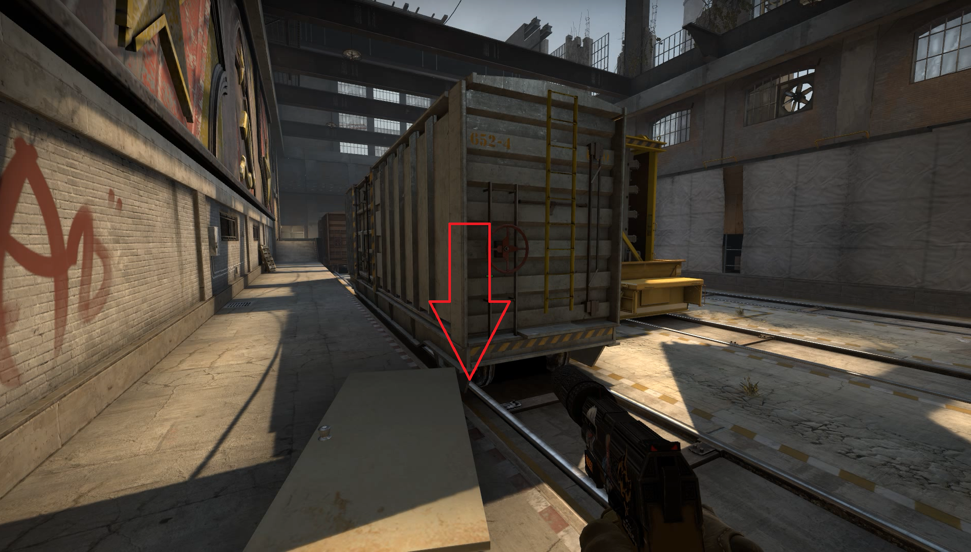 Выход на точку В на Train непросто сдержать одному, однако такая раскидка значительно упростит вам игру. Встаем в угол между нижним парапетом и поездом.