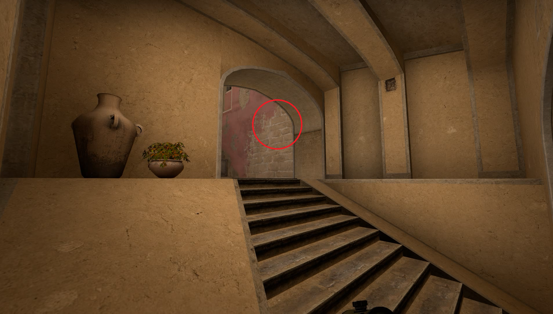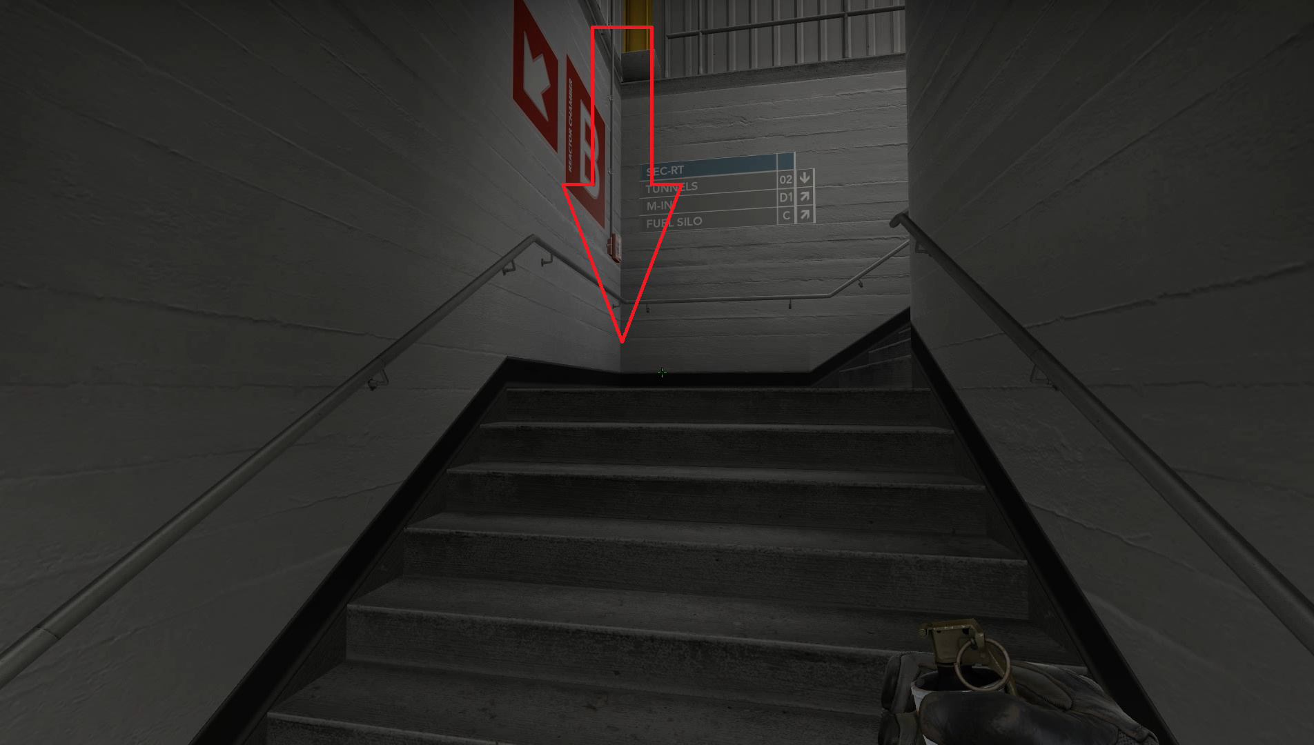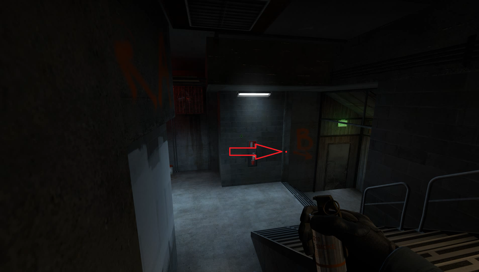 Эта раскидка поможет как снайперам, так и обычным игрокам с винтовкой. Встаем в угол сикрета на лестнице.