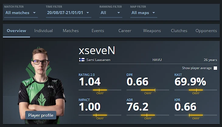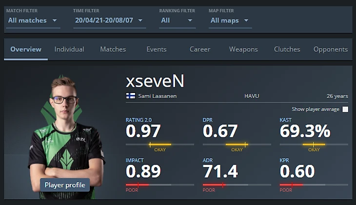 Забавный факт - если взглянуть на рейтинг HLTV xseveN после перехода Jamppi в состав ENCE, можно увидеть, что он чаще оказывался с красным рейтингом, чем с рейтингом единица. Да, Икссевен часто оказывался в минусе, но после перехода в HAVU он чаще оказывался с положительным рейтингом.