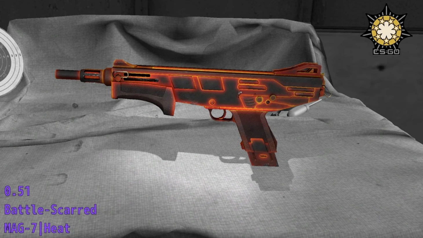 Простейший скин, который хорошо выглядит как в идеальном качестве, так и в поношенном. Сочетание оранжевого и черного цветов создает видимость, что дробовик раскален до предела.