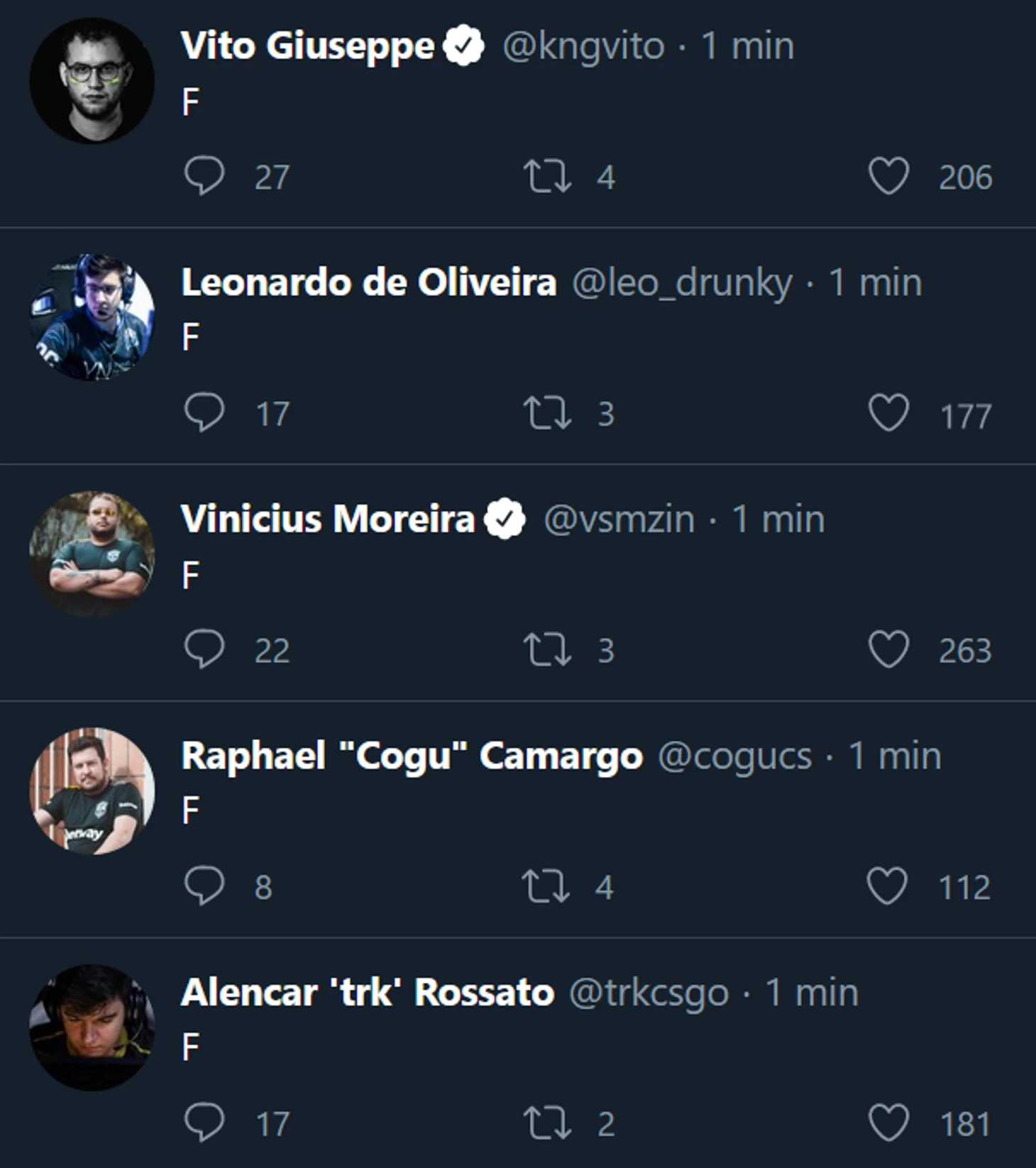 Каждый игрок команды MiBR, за исключением LUCAS1, отправили букву "F" в своих твиттерах. Троллинг это или нет — неизвестно. Ждём кика LUCAS1?