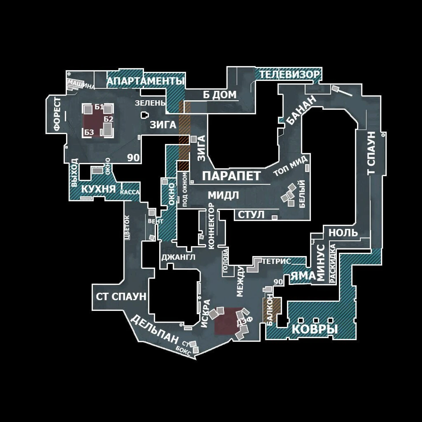 Перед тем, как впервые запускать карту в матчмейкинге, поиграйте на ней на пабликах или с ботами, чтобы понимать, где находятся пленты для закладки бомбы (их всегда 2) и как быстро можно добежать до них со спавна террористов и спецназа.