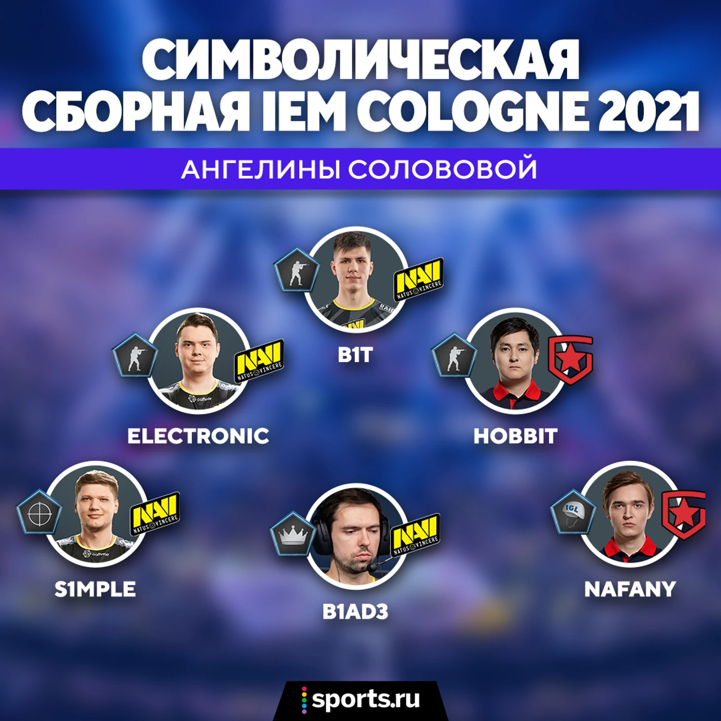 Что касается моноязычного ростера: мне близка ваша мысль, но у каждого автора есть своя концепция сборной, поэтому результаты и различаются. Игорь захотел выделить Кзипекса, Кэрригана и Малека. Федя собрал сборную без 6 лучших игроков по статистике (без Симпла, Бита, Элека, Дегстера, Хантера и Броки). Ангелина решила отметить Нафаню с лучшими индивидуальными показателями среди капитанов, а также Хоббита - человека, который на первом топ-лане для текущего состава Gambit показал уровень не хуже, чем в онлайне.