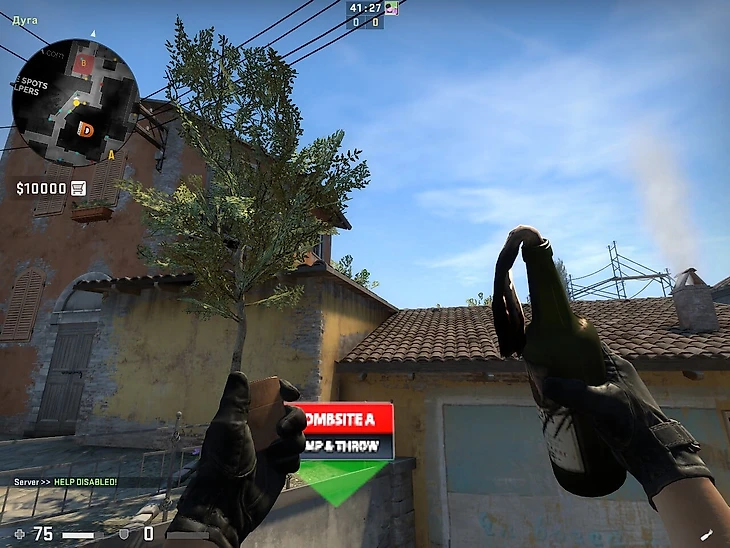 Залог успешной игры в обороне – контроль банана. В начале раунда туда может встать до трех игроков, чтобы откинуть стартовые «молотовы» и осколочные. После первой раскидки и занятия банана, двое игроков могут уходить под А.