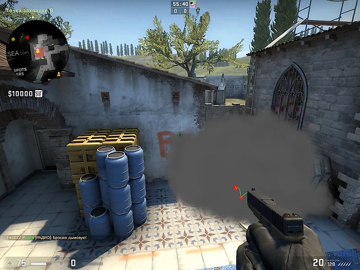 Никогда не отдавайте банан. Даже если вы планируете выход под А, стартовые «молотов» и смок на бочки – дефолт для каждого раунда. Они как минимум дезориентируют противника, у которого не будет инфы по банану, а следовательно не будет и быстрой перетяжки на А.