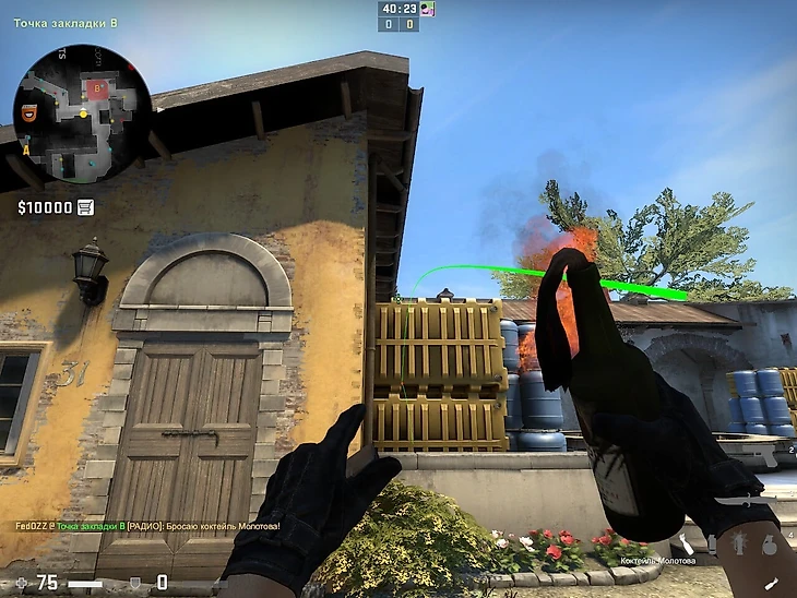 Если оставшийся игрок видит террористов, идущих на банан, он откидывает зажигательную и уходит в сайд в ожидании хелпы. Пока атака пройдет банан и «молотов», на Б успеет вернуться еще один игрок (а может и два).