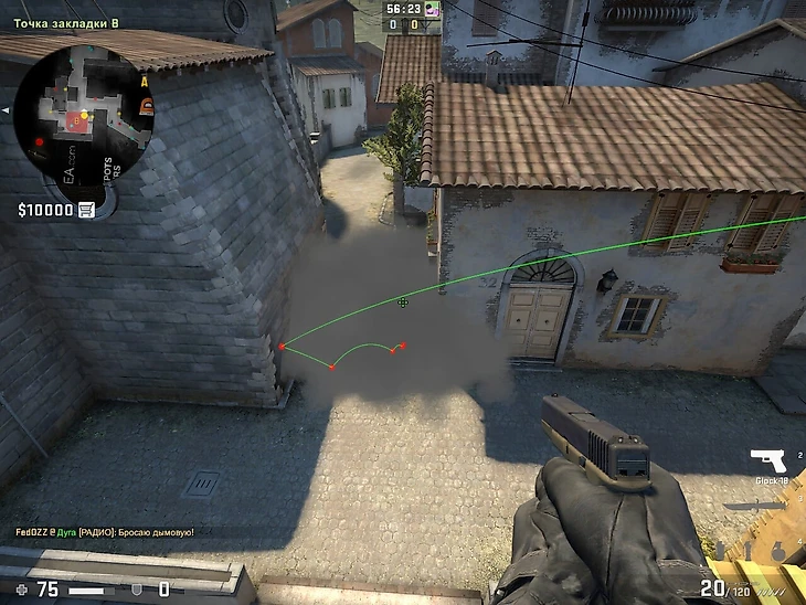 Выход Б только через банан требует куда больше раскидки: смоки на шорт и гробы, «молотовы» за тройку и в дарк. При этом нужно уметь кидать эти гранаты, стоя на банане и не открываясь под КТ и сайд.