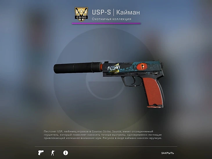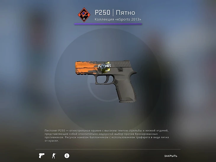 USP-S Кайман за 2 тысячи рублей и P250 Пятно за 2,3 тысячи рублей. Очень старые скины из 2013 года, кроме очень скучной раскраски их также объединяет металлический стикер Бумыча из мейджора в Бостоне – первого, на который попал игрок.