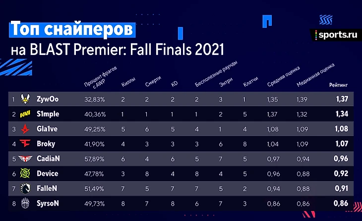 – ZywOo: рейтинг – 1,37, 1-е место в общем топе.