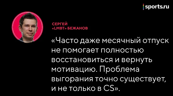 – Однозначно было. Часто даже месячный отпуск не помогает полностью восстановиться и вернуть мотивацию. Проблема выгорания точно существует, и не только в CS.