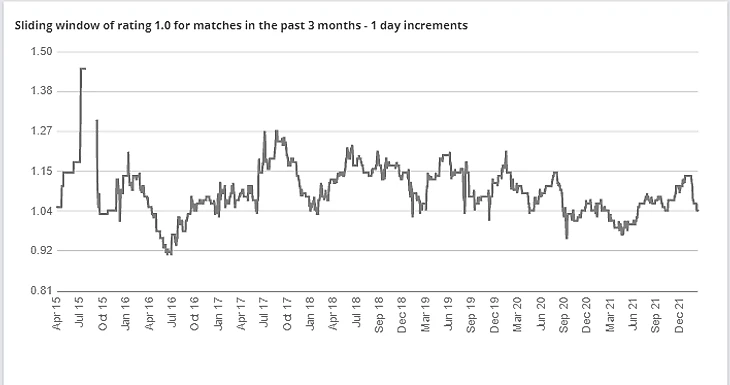 Да и в целом на графике видно, что Денис всегда играл стабильно.