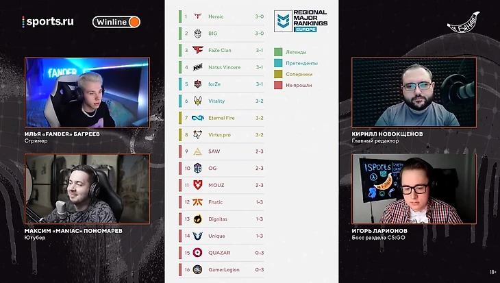 При обсуждении первого европейского РМР-турнира ведущие не только порадовались выходу NAVI, Forze и Outsiders на мейджор, но и обсудили Dignitas – шведскую команду, за которую выступает легендарный F0rest. Maniac рассказал, что уже давно фанатеет от этого игрока: «Фореста на самом деле жалко. Я был прямо дичайшим его фанатом, копировал у него все настройки. Помню, как вышла такая маленькая неудобная мышка от Steelseries, и я ее взял, привыкал к ней где-то неделю. Я играл с ней просто из-за того, что с ней также играл Форест. Это вообще игрок-легенда – и в CS 1.6, и в CS:GO. И сейчас стремно смотреть за результатами его команды».