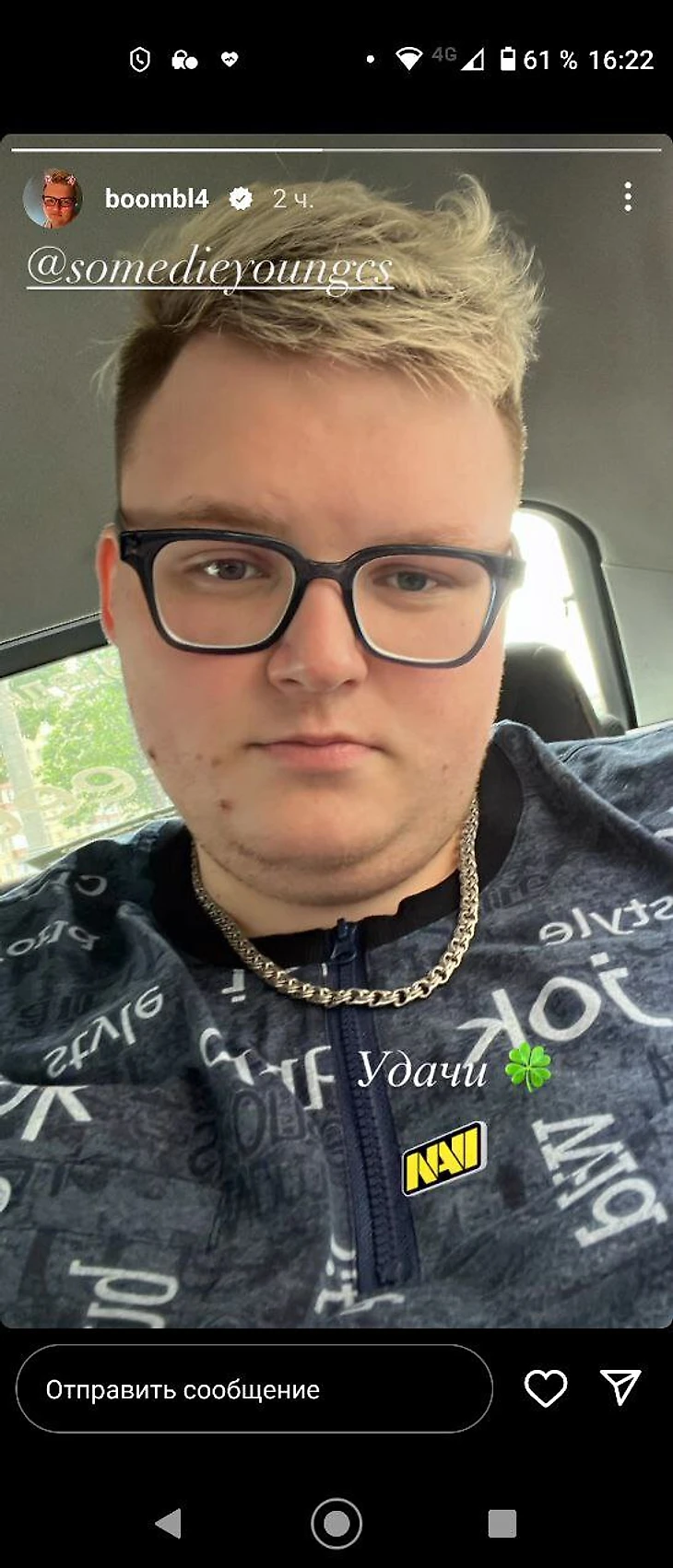 Вероятно, Бумыч смотрел первый матч NAVI на Бласте – он пожелал удачи Сомдайянгу. Но после матча, как и во время следующих, ничего в соцсети не выкладывал.