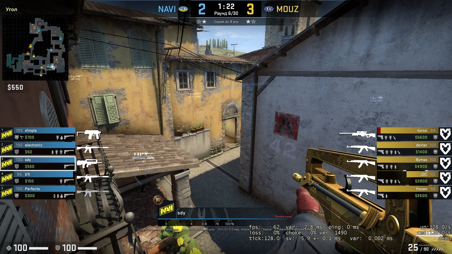 В защите Sdy играет основным опорником открытого плента. Он последним убегает со своей точки на ретейк, не поджимает и не пытается найти энтри. NAVI с Виктором на Мираже стали часто практиковать схему 1 – 3 – 1, где Симпл с Электроником и Битом активно воюют на миду, пока опорники играют отдаленно на плентах.
