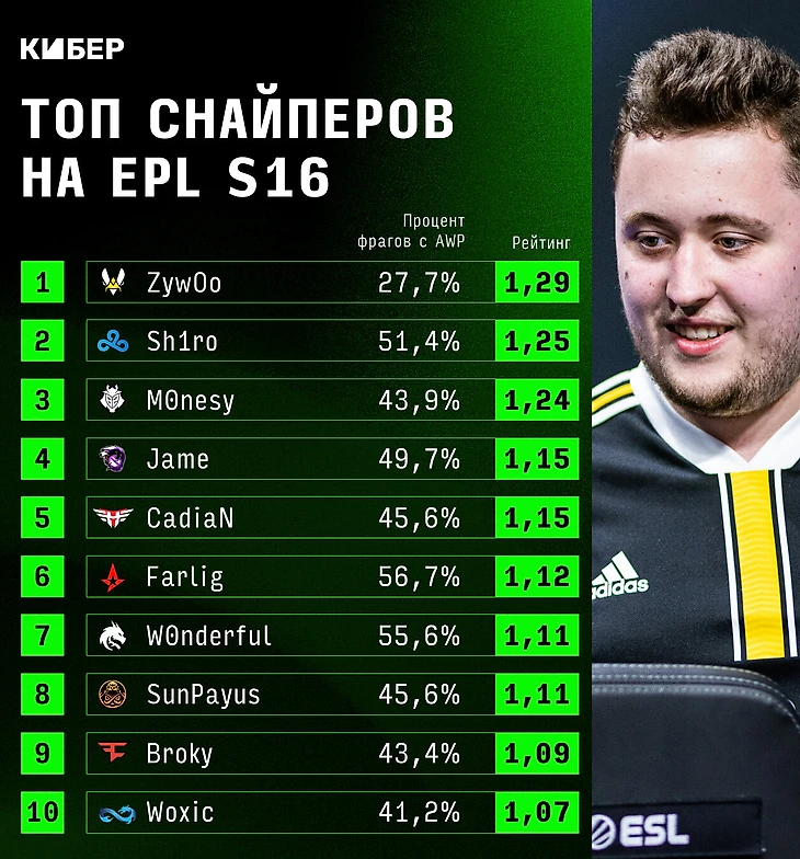 – Sh1ro с 1,25 просто бесподобен. Он идет в топ-3 и наступает на пятки Zywoo!