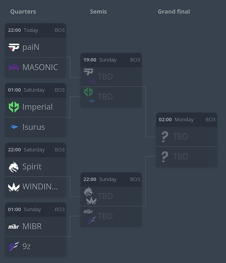 За победу будут бороться шесть команд из Южной Америки - Imperial, MIBR, WINDINGO, Isurus, paiN и 9z, и две команды из европейского региона - Spirit и MASONIC.