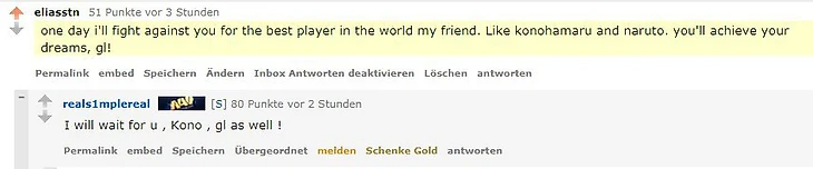 S1n воспользовался шансом и в целом смотрелся неплохо – может, его вообще оставят в основе? А еще Элиас наконец-то сыграл против Симпла – этой встречи он ждал 4 года! В августе 2018-го 16-летний немец написал на реддите: «Однажды я поспорю с тобой за звание лучшего игрока мира, мой друг. Как Конохомару и Наруто. Ты воплотишь свои мечты, удачи».