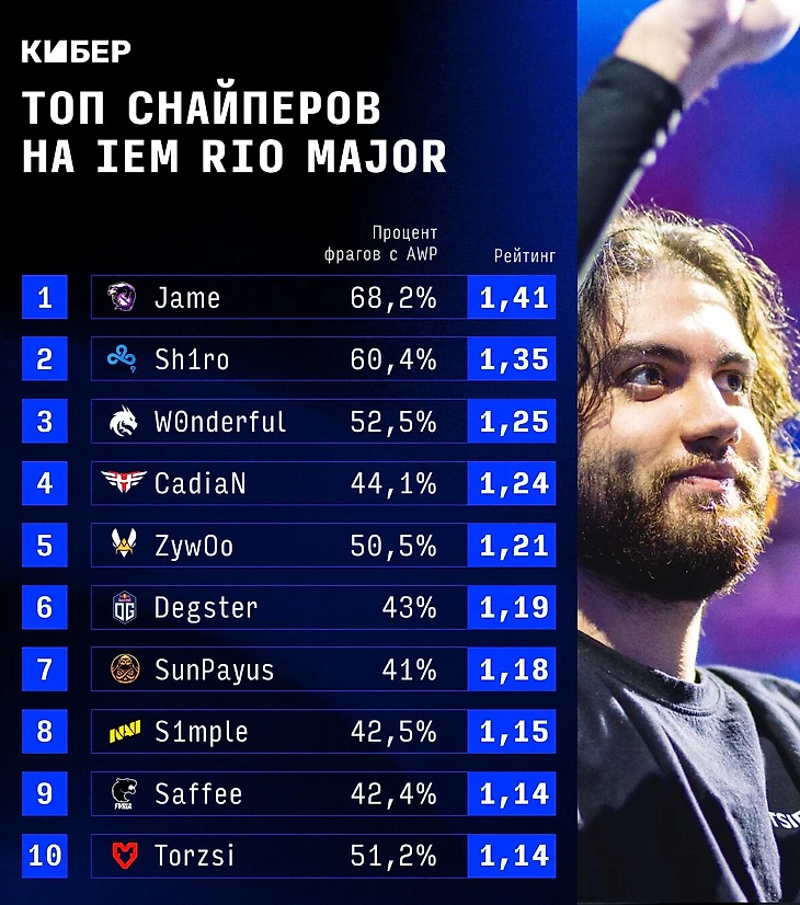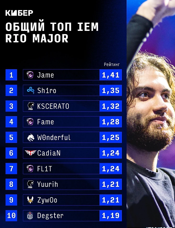 У Симпла личный антирекорд, Джейм – с отрывом первый. Рейтинг мейджора по CS:GO