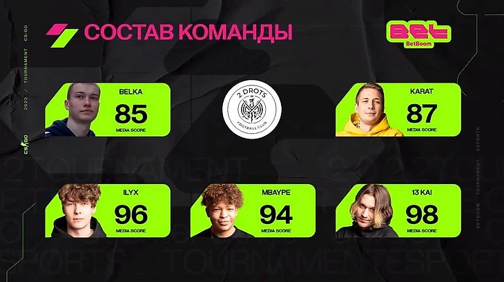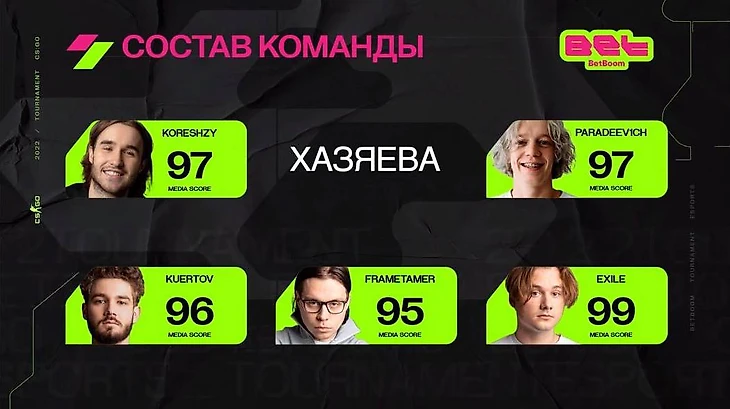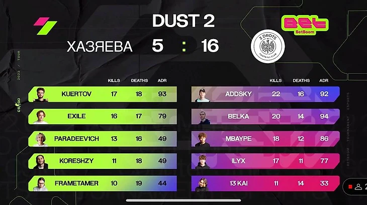 Главное дерби понедельника состоялось вечером — и началось оно с замены KARAT на ADDSKY у 2DROTS. Остальными участниками заявленного ростера стали 13 KAI, MABYPE, ILYX и BELKA. Тег ХАЗЯЕВА был представлен следующими игроками: KORESHZY, KUERTOV, FRAMETAMER, EXILE и PARADEEV1CH.
