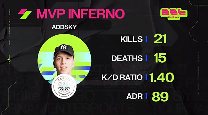По итогам Inferno лучшим игроком карты стал ADDSKY и 2DROTS.