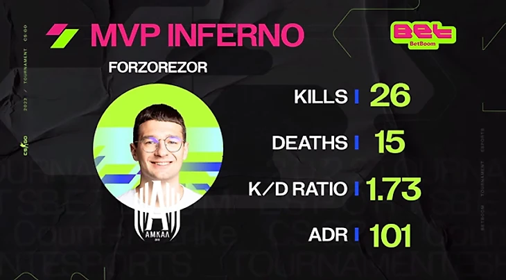 Смена сторон не дала нужного эффекта — АМКАЛ продолжила доминацию и Inferno завершилась со счетом 16-7. Лучшим стал FORZOREZOR.