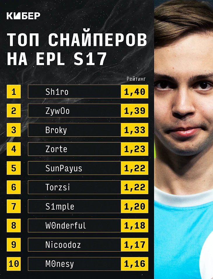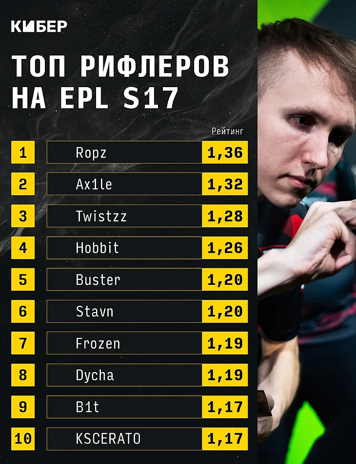 Турнир ESL Pro League 17 прошел с кучей сюрпризов. G2 не вышла даже в четвертьфинал, NAVI с кучей проблем дошли до полуфинала, а Cloud9 и вовсе героически сражалась против Faze в финале! Индивидуально на турнире также открылось несколько новых игроков, которые раньше не блистали на тир-1 уровне.