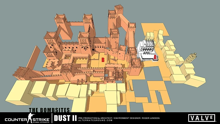 Карта была сделана на Source 2. Да, уже в 2013 году Valve планировала перенести CS:GO на новый движок, но отказалась от идеи из-за технических сложностей. К тому же на тот момент Source 2 не поддерживал игры от первого лица, из-за чего от полностью готовой карты отказались. И даже когда CS перешел на новый движок, в нем все равно остался классический Dust2, к которому все привыкли.