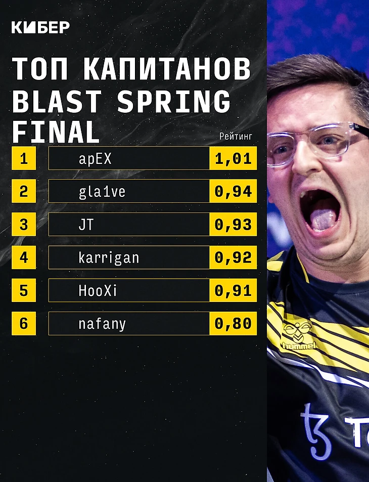 • Zywoo с 1,29 – лишь третий в общем списке. Зато Apex стал лучшим капитаном, правда, его рейтинг всего 1,01.