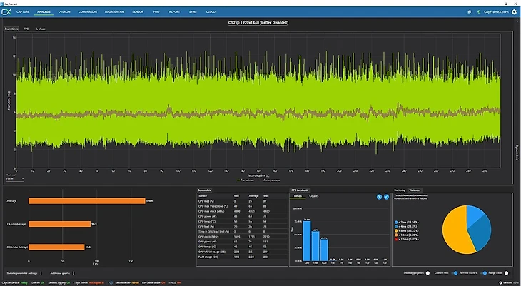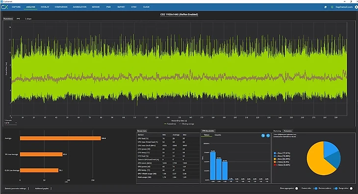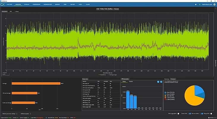 Обратите внимание на круговую диаграмму в правом нижнем углу: в CS:GO две трети кадров обновлялись с задержкой не более четырех миллисекунд. Чем меньше задержка между двумя кадрами – тем плавнее ощущается игра.