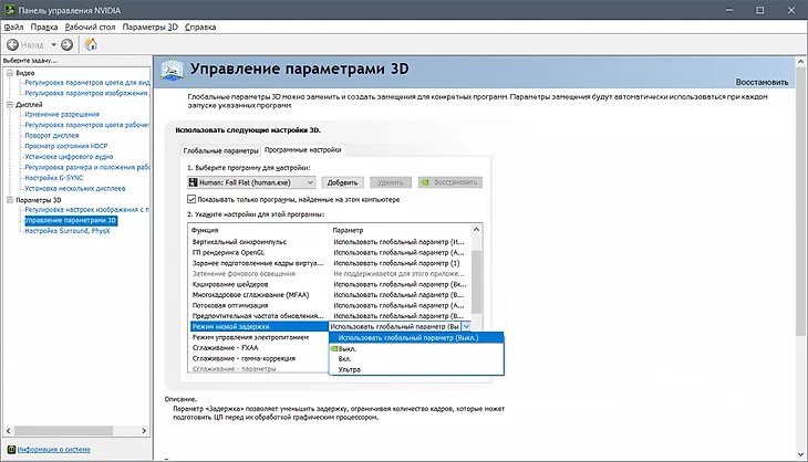 Очевидно, что в CS 2 эта функция не работает, так как она лишь увеличивает задержку между кадрами. Отключить ее можно в панели управления NVIDIA, раздел «Управление параметрами 3D». Она работает почти так же, как и NVIDIA Reflex, но на уровне видеокарты, а не движка игры.