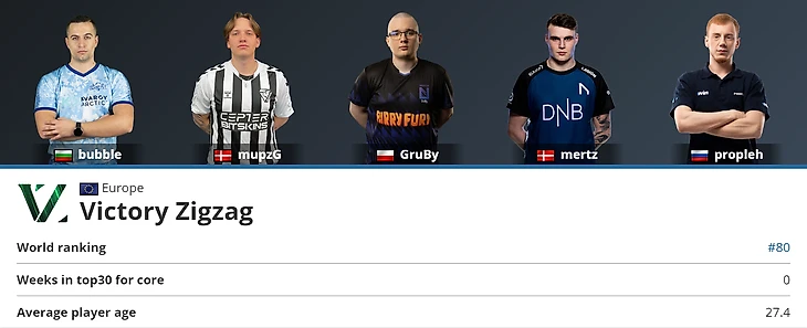 Стак Victory Zigzag впервые появился на HLTV 17 июня – тогда коллектив выступил на Leon Teamplay Season 1. На турнире команда проиграла Немиге и академии Ence и заняла последнее место.