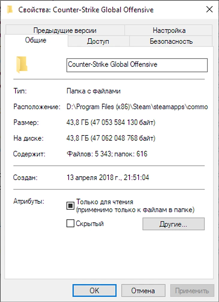 При этом по факту папка с игрой на жестком диске занимает чуть больше 40 Гигабайт (папка с КС 2 называется так же как и в CS:GO).