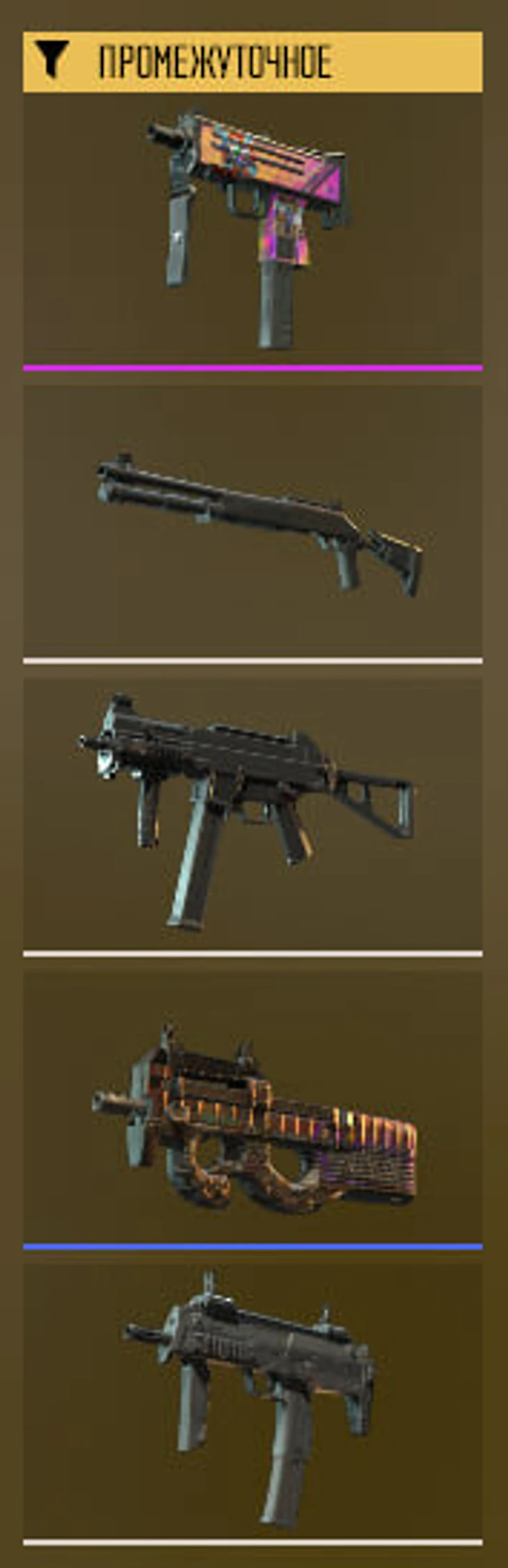 Так назвали категорию, в которую входят пистолеты-пулеметы, дробовики и пулеметы. Снова начнем с КТ.