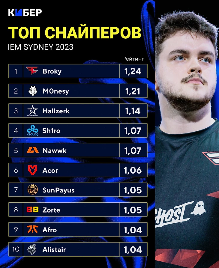 Из команд удивили (с положительной стороны) Complexity и BetBoom Team. Американский клуб, усиленный Элиджем, – настоящее открытие Сиднея, а новый коллектив Нафани вышел в плей-офф уже на первом крупном турнире. Лучше разобраться с итогами IEM Sydney поможет индивидуальный рейтинг игроков.