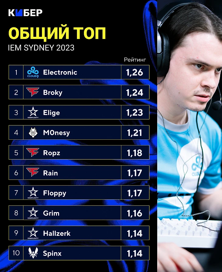 Рейтинг IEM Sydney. Электроник – лучший, 4 игрока Complexity в топ-10