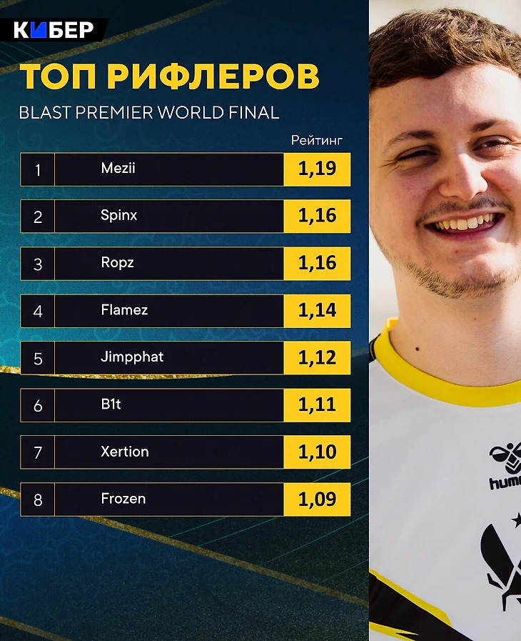 Рейтинг финального Бласта. Зайву – лучший с отрывом, все игроки Vitality в десятке